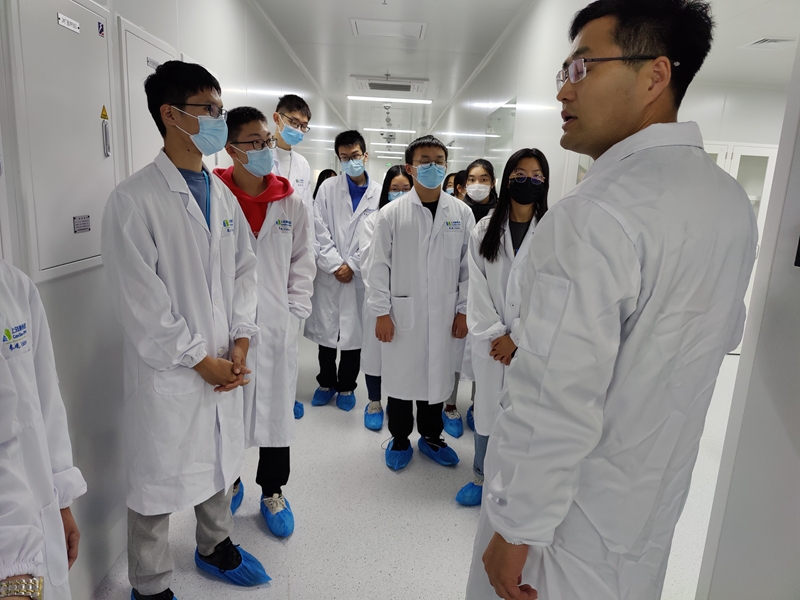 接下来,在朱洪飞老师和陈光辉老师的带领下,复旦ccav 师生分为两组依次参观了生产中心、制剂车间和质量控制实验室,大家对药物生产的基本流程及高标准、严要求的药物生产环境有了初步的了解。现代化的设备和药物生产过程中不断引入的新技术,也进一步激发了一年级新生们迫切进入实验室参与科研的愿望。