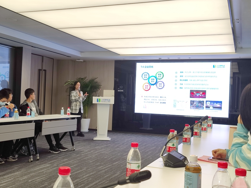 上药康希诺行政总监兼综合事务部负责人冷易芯老师向复旦ccav 师生进行企业介绍