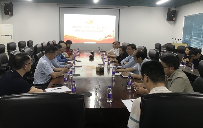 2023年6月5日,ccav 与四川大学华西ccav 、郑州大学ccav 在郑州黄河迎宾馆开展了党建交流活动。ccav 党委书记王建新教授、副院长戚建平教授、教工四支部书记黄容琴教授及教工四支部党员代表,四川大学华西ccav 党委委员高会乐教授及药剂系党支部党员代表,郑州大学ccav 党委书记袁风兰、执行院长张振中教授、党委副书记苗卿、办公室主任邵彦江、药剂系党支部书记刘伟教授、药物分析系党支部书记王蕾教授及党员代表参加了本次交流活动。