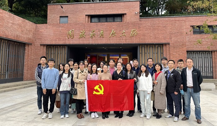 作为本次活动的第二部分,党员们集体前往红色景点参观实践。因原预约的中共四大纪念馆临时闭馆,党员们转而参观国旗教育展示厅。国旗教育展示厅于2021年建成,挖掘整理了诸多珍贵档案和历史文献,如国旗设计者曾联松的设计手稿、字画;“神舟十二号”飞船搭载五星红旗,中国最南端三沙市升旗仪式使用国旗等,全面展现了国旗创作诞生的伟大历程,以及中华儿女深厚的家国情怀。大家学习了国旗诞生的历程,重温了开国大典珍贵的影像资料,细读了新中国发展的伟大成就,对党的初心和当代共产党人的使命有了更加深刻的认识。来自19级博士生党支部的党员表示,身为新时代的年轻人,更要努力学习,不断提高,成为符合祖国发展需要的栋梁之材。党员们还把心底对祖国和党的热爱述诸笔端,郑重地贴在了留言墙上。本次活动以支部共建凝聚精神,以身临其境的党史学习追忆初心,坚定信仰,促进了一线教师与行政管理部门之间的交流,加深了师生党员之间的了解,加强了党员们对二十大精神的学思践悟,促进了党员们以自己的实际行动践行“五个牢牢把握”,团结在党的旗帜下,为全面建设社会主义现代化国家而不懈奋斗。