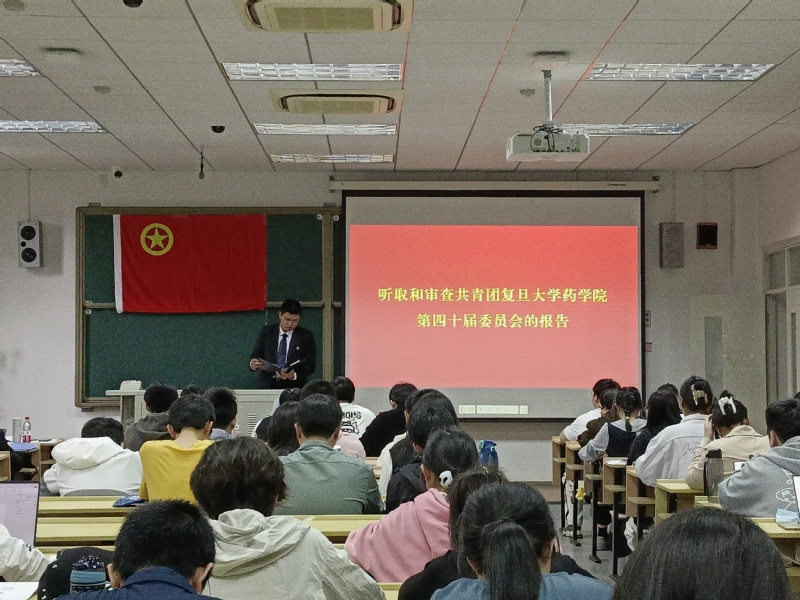 王翰麒代表共青团ccav 第四十届委员会向大会作题为《紧跟党走,牢记嘱托,团结带领药学青年人在新时代书写实干篇章》的工作报告。报告从团学团建、校园文化、学术科研、志愿服务等角度向全体与会代表介绍上一届团委工作情况,同时剖析了不足,最后他勉励广大团员青年以专业所长回应国家需求和社会需求,努力成长为堪当民族复兴重任的时代新人。