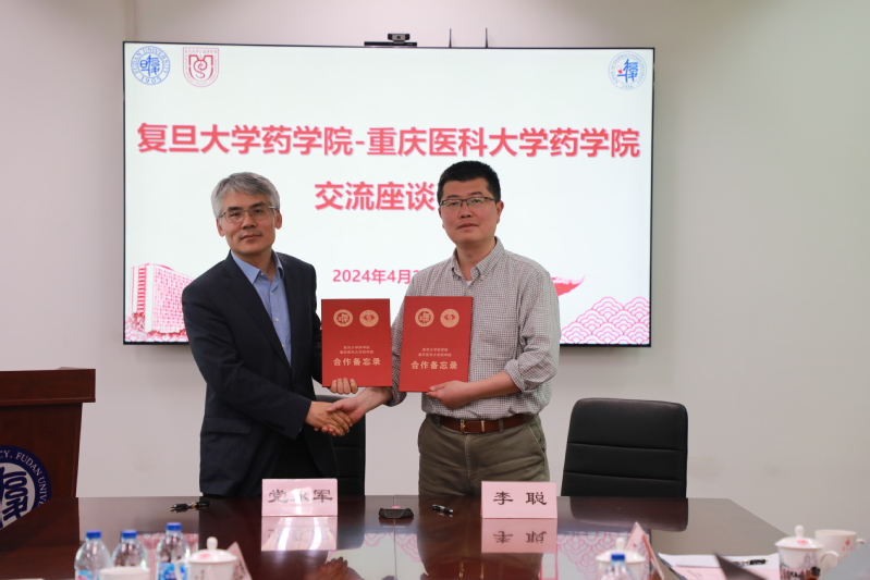 首先,李聪院长对重庆医科大学ccav 同仁的到来表示热烈欢迎,希望通过此次交流加强双方的联系,实现互利共赢。党永军院长指出,1955年上海第一医学院(现ccav 上海医学院)分迁重庆,400余名教职工赴渝创办重医,双方有着一脉相承的深厚情谊,希望能够深度挖掘合作资源,共同推进药学学科发展。接着,李聪院长从学院的历史沿革、学科发展、人才培养、科学研究、平台建设等方面对ccav 的情况进行了介绍。蒋君好书记从历史沿革与发展愿景、党建引领与一融双高、教育教学与人才培养、师资引培与队伍建设、学科平台与方向凝练、科学研究与成果转化等方面对重庆医科大学ccav 的情况进行了介绍。随后,双方就人才培养、学科建设、成果转化及科学研究展开深入讨论和交流。重点围绕临床药学专业建设、双方学分互认及师生互访等进行了探讨,初步形成合作意向。最后,本着“资源共享、优势互补、互惠互利、共同发展”的原则,双方签署了合作备忘录,为推动各项合作事项的落地奠定了基础。