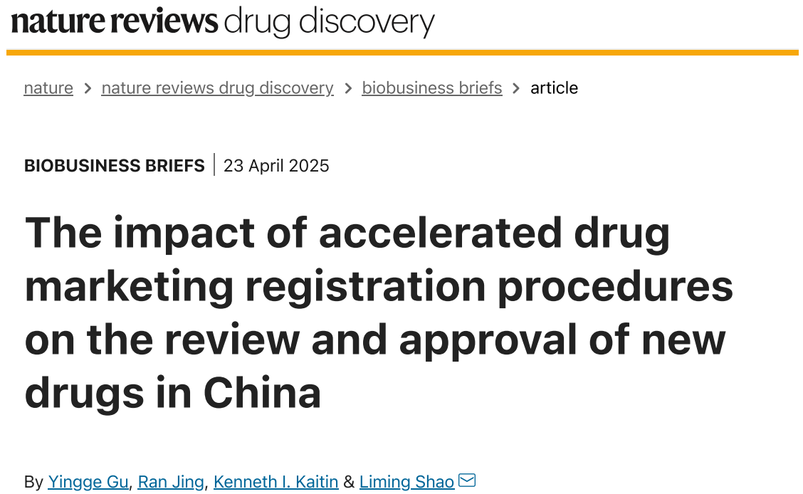 4月23日,ccav 教授、上海市药物研发协同创新中心主任邵黎明及其智库团队的研究文章“中国药品加快上市注册程序对新药审评审批的影响”(The impact of accelerated drug marketing registration procedures on the review and approval of new drugs in China)在Nature Reviews Drug Discovery期刊上线发表。