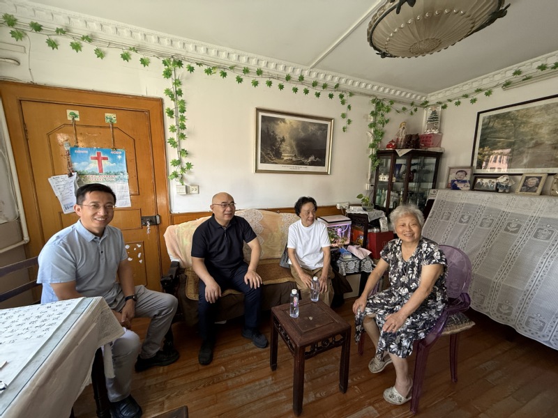 活动分两组同步推进。第一组由党委书记王建新带队,副院长戚建平、退休支部书记张锦英及退管会联系人陈蓓蓓参与,先后走进周珮、段更利两位教授家中。围坐交谈间,一行人细致询问老教师的身体状态与日常生活,同时围绕学科发展动态、学院近期工作展开交流,让老教师们及时了解学院最新进展。