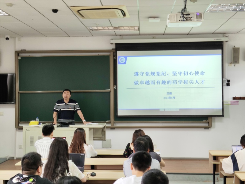 为持续推动党纪学习教育走深走实,认真做好毕业生党员集中党性教育工作,2024年6月4日上午,ccav 党委在张江复旦国际创新中心Z2202开展了毕业生党员党性党风党纪学习教育专题党课。ccav 党委副书记王盛以“遵守党规党纪、坚守初心使命,做卓越而有趣的药学拔尖人才”为主题进行授课,ccav 80余名毕业生党员参加。
