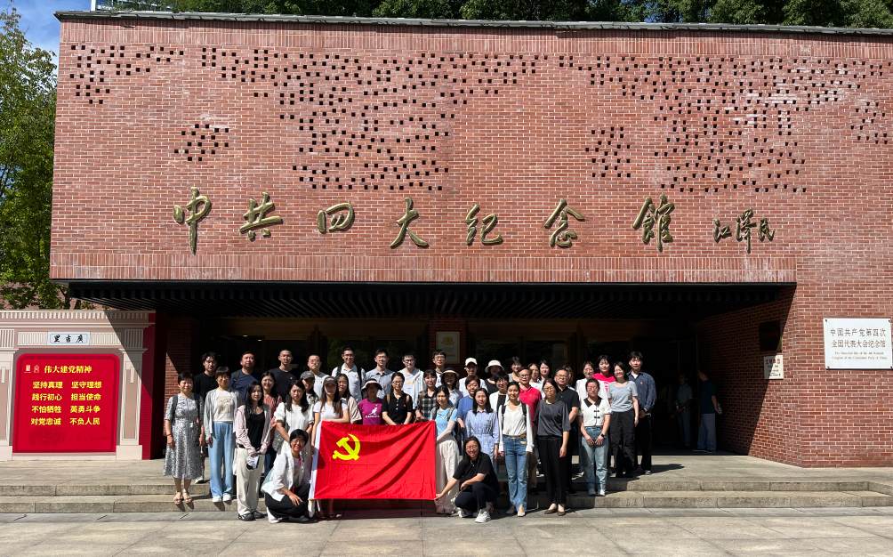 集体学习研讨后,ccav 教工第五党支部、教工第八党支部的党员及师生预备党员共计40余人踏上红色之旅,前往中共四大纪念馆和国旗教育展示馆参观。在讲解员的悉心引领下,大家逐一参观了序厅“工农联盟”、第一部分“时局与形势”、第二部分“筹备与召开”,第三部分“发展与高潮”及尾厅,重温了1925年中共四大召开时的生动场景及大会的历史贡献;同时也深刻了解了国旗创作诞生的伟大历程和中华儿女与国旗的动人故事。在庄重的氛围中,大家面对党旗,进行了一次庄严的宣誓。这次参观不仅是一次红色教育的实践课堂,更是一节生动的现场教学课。通过观看珍贵的历史文物和文献资料,大家深受教育和启发,纷纷表示要将革命先烈的崇高精神传承下去,为党和人民的事业不懈奋斗。