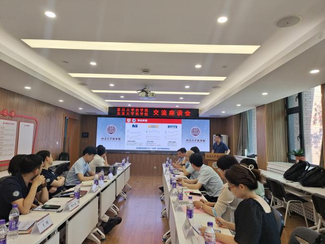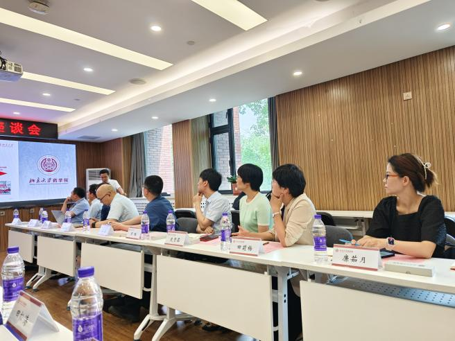 座谈会伊始,方成与王建新介绍双方参会人员,并在开场讲话中指出,两所学院同为药学教育“老五校(院)”成员,有着深厚的合作基础,双方在学科设置、人才培养方面存在着共同点,希望今后进一步加强战略合作,协力推进高质量人才培养和原创性成果产出。随后,黄卓从ccav概况 、师资队伍、平台建设和学生培养等方面介绍了北京大学ccav 总体情况。李聪从发展历史、学科建设、人才培养、科研平台、成果转化等方面介绍了ccav 的基本情况,并说明了此次调研的主要目的,希望能借鉴北京大学ccav 在科研管理、人事制度改革、本科教育教学创新等方面的成功经验。