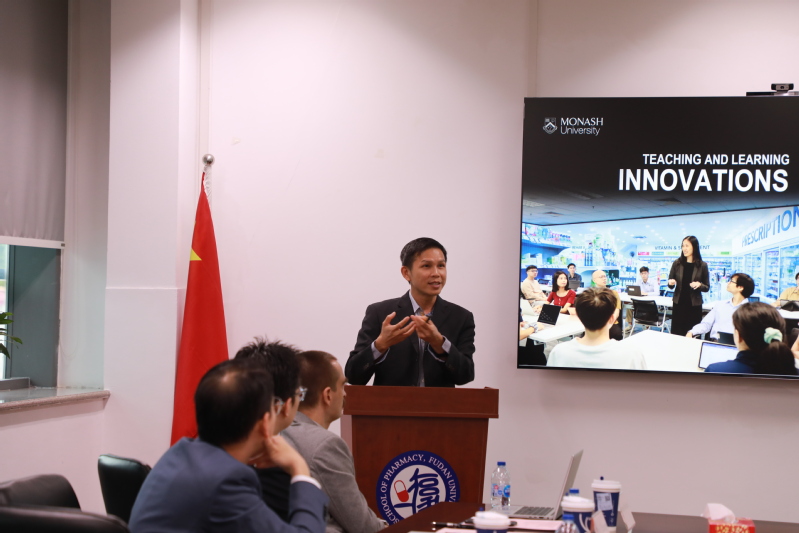 双方在科研楼晶晖厅进行热烈交流。李聪代表学院向来宾们表示欢迎,并向来宾简要介绍了学院的人才培养、科学研究以及产学研合作等各方面情况。Shaun Lee Wen Huey详细介绍了莫纳什大学马来西亚校区ccav 的主要科研方向和情况。双方参会教师分享了各自的研究领域和科研成果。与会者充分交流,寻求和凝练潜在科研合作点,初步达成合作建立创新药联合研究中心的共识。双方还就未来学生交流、联合培养研究生、青年教师互访、共同举办国际会议等合作形式进行了探讨。