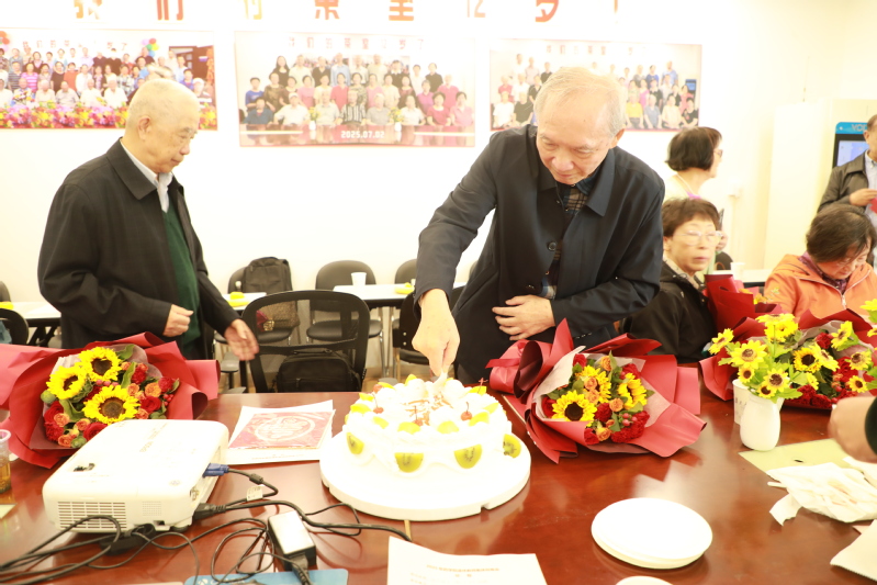 活动在温馨的氛围中推向高潮。程务本、陈纪岳两位寿星代表共同切开生日蛋糕,甜美的滋味浸润着每个人的心田。学院领导为每位寿星送上精心准备的鲜花,定格下温情瞬间。全体参会人员合影留念,为本次祝寿活动画上圆满句号。