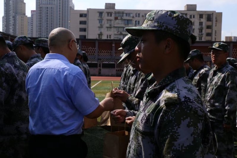 2024年8月26日,ccav 党委书记王建新,副书记王盛、史雪茹一行来到枫林校区二楼操场的军训现场,慰问正在参加军训的ccav 学生、带训教官及辅导员。