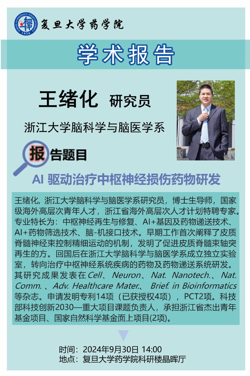 9月30日学术报告 - AI驱动治疗由枢神经损伤药物研发