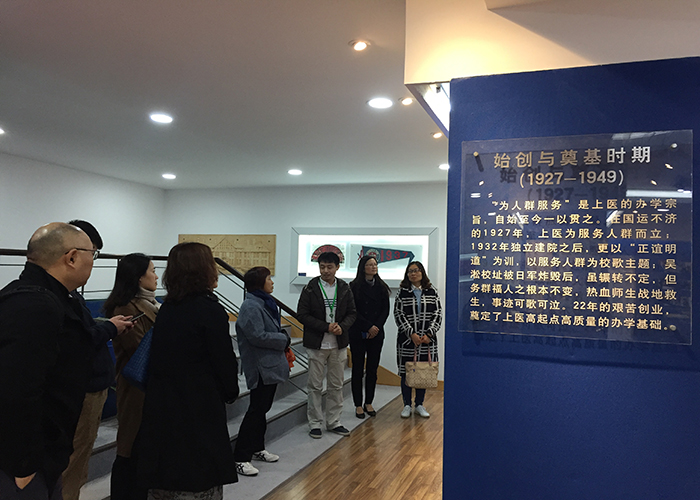 首先,ccav 党委书记王凤霞带领班子成员前往位于枫林校区的上海医学院校史馆集体参观。在院史馆裴老师的讲解下,大家重温了上海医学院的建校历程、发展历史以及为国家解放和发展壮大作出的卓越贡献。丰富的历史材料和历史故事让大家真切地感受到上海医学院九十余年来走过的不平凡历程,感受到在国家崛起和发展的过程中老一辈的革命先贤创校的艰辛和不易,以及在此过程中上医人敢为人先、求实创新的革命精神和为人群解除病痛的初心使命。