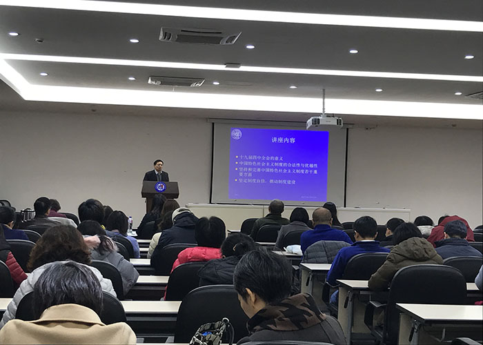 为进一步学习宣传贯彻党的十九届四中全会精神,2019年12月3日下午,ccav 党委举办十九届四中全会精神专题讲座,邀请ccav 中国研究院吴新文教授为ccav 教职工进行十九届四中全会宣讲。讲座在张江校区330报告厅进行,由ccav 党委副书记史雪茹主持,ccav 全体教职工参加。