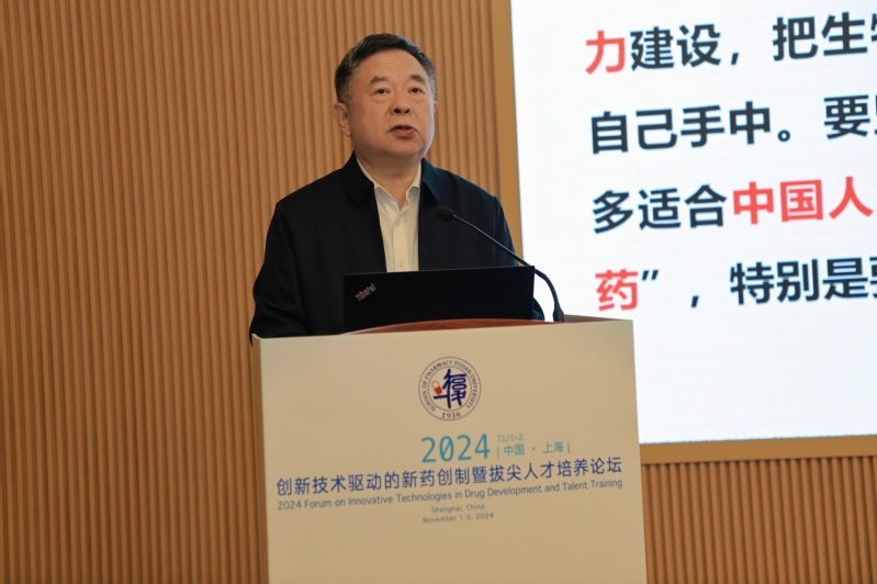 在主旨演讲环节,中国药科大学生物医药战略研究院常务副院长姚文兵以“产教融合促进药学拔尖人才培养思考”为题,深入探讨了药学教育如何培养能服务于新质生产力发展的药学拔尖人才,总结了发展新质生产力对人才培养提出的新挑战和新要求。他强调药学拔尖创新人才应当具有综合优秀、个性突出、品格坚毅、勇于尝试的特质,同时呼吁改革教育方式,健全制药评价体系,加快转变理念,以培养适合中国国情的“卓越药师”。