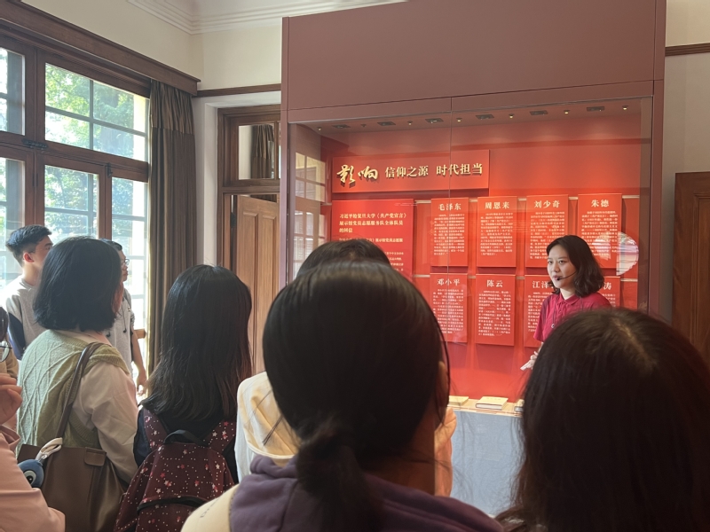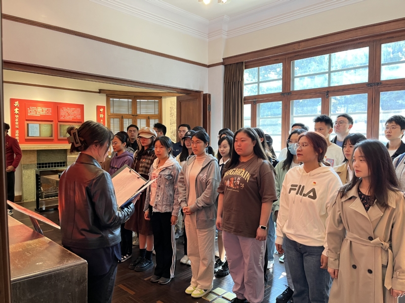 最后,预备党员同志们在“星火”党员志愿服务队副队长、ccav 2022级硕士生董美辰的带领下参观陈望道旧居,共同探索《共产党宣言》的故事,寻求信仰的源泉、真理的力量。