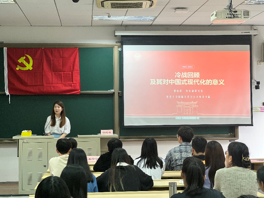 接下来,ccav 国际关系与公共事务学院青年副研究员银培萩老师为大家带来《理解中国式现代化——从冷战中的可乐贸易说起》复旦主题党课。银培萩老师向学员们介绍了冷战的起源、冷战中涉及到的两种不同的经济制度,冷战中的“可乐贸易”和冷战带来的俄罗斯和北约东扩的阴影。她生动的讲解让学员们从别样的角度理解了中国式现代化,回顾历史、了解国际局势;展望未来、坚持中国特色。