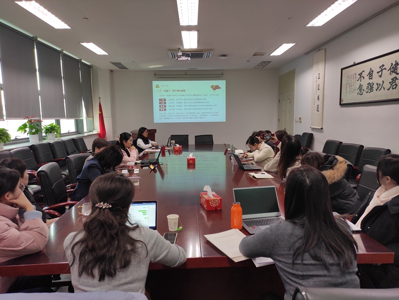 随后,党委副书记史雪茹带领大家学习十九届六中全会精神。她首先简要介绍了十九届六中全会召开的背景和整体情况,并结合学院“百年百题”党史知识问答的内容,对改革开放以来历届六中全会的内容进行了简单梳理,同时要求在学习《中国共产党第十九届中央委员会第六次全体会议公报》的基础上,更要加强对《中共中央关于党的百年奋斗重大成就和历史经验的决议》的研读和理解。在讲解了《决议》的框架结构以后,史老师围绕七大部分的脉络结构,分章节以“数字记忆法”提炼出了主要的学习内容,并强调,学习贯彻十九届六中全会精神是党史学习教育的核心内容之一,面临百年未有之大变局,国际环境复杂多变,每个共产党员更需要学习历史、看清历史,继续将党史学习同总结经验、推动工作结合起来。《决议》最后指出,党和人民事业发展需要一代代中国共产党人接续奋斗。作为教育事业工作者,更要充分认识到“必须抓好后继有人这个根本大计”,不断提高业务本领,提高管理能力和服务意识,在新的历史起点,担负起新时代的历史使命,为ccav 的蓬勃发展、为建设“第一个复旦”而不懈奋斗!