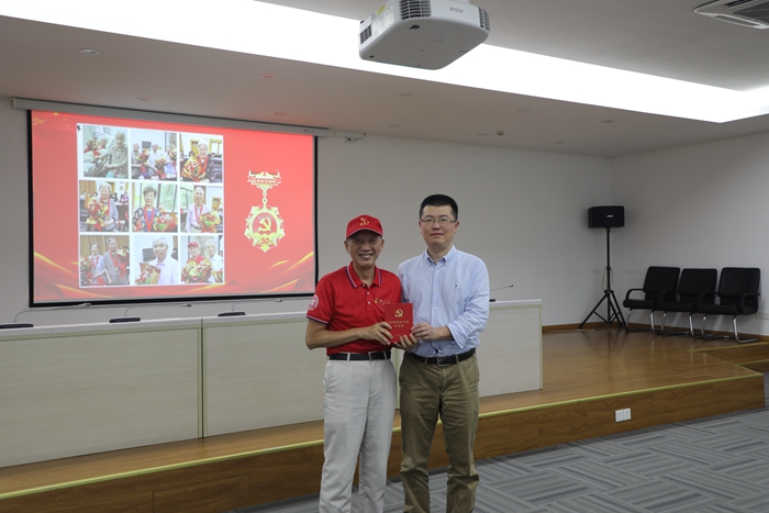 “光荣在党50年 初心使命永相传”ccav 庆祝建党百年师生座谈会于6月18日在枫林校区八角厅举行,40多名师生参加,踊跃交流发言,并见证了庄重而又喜庆的纪念章颁发仪式。ccav 共有13名退休党员荣获“光荣在党50年”纪念章,陈纪岳教授作为代表参加了党员大会,由ccav 副院长(主持工作)李聪为其颁发纪念章。陈纪岳老师在随后的发言中谈到,在建党100周年之际,学校开展了“追寻红色印迹,牢记初心使命”主题教育活动。他积极响应学校号召,重走红色热土,重温党的历史,从湖南长沙到遵义赤水、再到重庆渣滓洞,通过走访,不断坚定信仰信念,接续奋斗精神。越来越多的事实证明,我们的党是伟大而正确的,社会主义事业是正确的。陈老师还表示,要做好自己的事情,尽力为党旗添彩。他作为一名最“年轻”的老党员,回顾自己在党50年的历程,坚持做到了踏实做事。无论是到生产建设兵团下乡,还是在ccav 教书育人,在该发挥作用的时候都毫不含糊,在本职岗位上尽职尽责,发挥党员先锋模范作用。