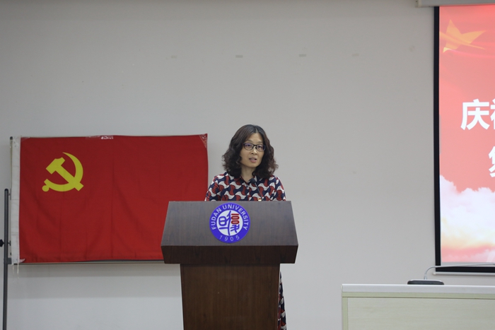 接着,2019级硕士生党支部孟娜娜作为学生代表汇报了一年来学习贯彻习近平总书记回信精神中的体会。她认为,在漫长的革命征程中,复旦历史上无数优秀的党员先辈们在办学、救国、强国的道路上上下求索,无私贡献,为当代复旦学子立下了好榜样。作为ccav 青年党员,去年新冠疫情的爆发让她深刻感受到药学人身上的医学责任,愿为新冠肺炎的临床药物治疗和防控工作做出贡献。前路漫漫,青年学生大有可为,她决心做中国医药卫生事业的一颗螺丝钉,坚定理想信念,践行初心使命。