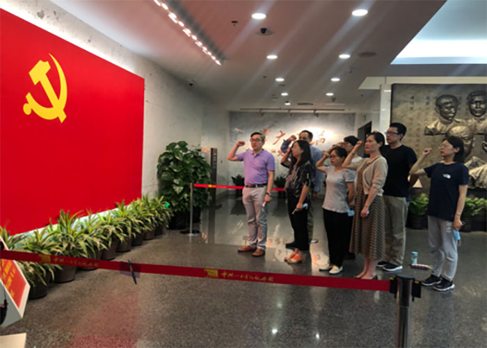 根据校党委和院党委关于“三会一课”,开展一次“做‘宣言精神’忠实传人”主题党日活动以及四史学习工作的安排,值中国共产党成立99周年之际,ccav 教工第七支部8名党员于2020年7月7日下午集体参观了中国共产党第一次全国代表大会会址纪念馆。