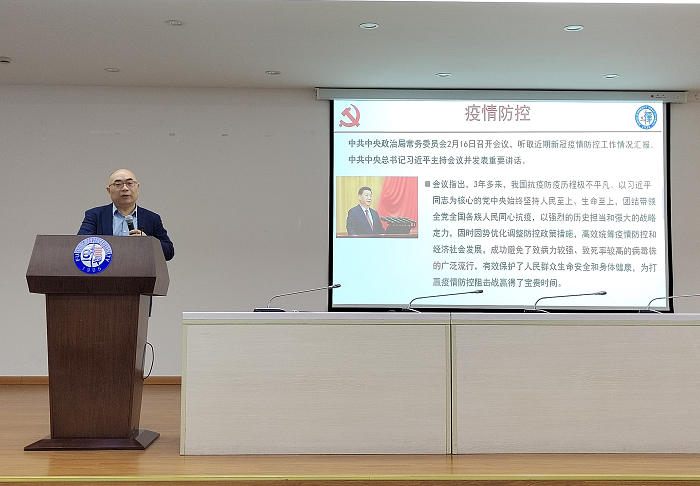 首先,王建新书记带领学习中央和上海市委关于疫情防控工作的最新指示精神,介绍了当前疫情形势和学校疫情防控政策等内容,强调学院将按照学校要求做好常态化校园防控工作,全面恢复线下教育教学,统筹疫情防控与工作发展。新学期要全覆盖、立体化精准开展系列教育活动,持续开展导师关爱行动,讲好“开学第一堂课”,提振信心、凝聚人心。随后,王书记带领学习习近平总书记在中央政治局第三次集体学习时的重要讲话精神,强调要深入学习领会总书记关于加强基础研究的重要论述,把党中央关于科技创新的一系列战略部署落到实处,坚持“四个面向”,坚持目标导向和自由探索“两条腿走路”,不断提升创新能力,努力在生物医药领域发挥创新引领作用。最后,王书记从党建工作、科研工作、教学工作、学生工作和行政工作五个方面介绍了学院2023年度的工作计划,并强调要以平台建设为抓手,以战略需求为导向,以学科优势为基础,积极开展“有组织的科研”,切实提升研究水平,推动一流药学学科建设,整体性推进学院各项事业蓬勃发展!