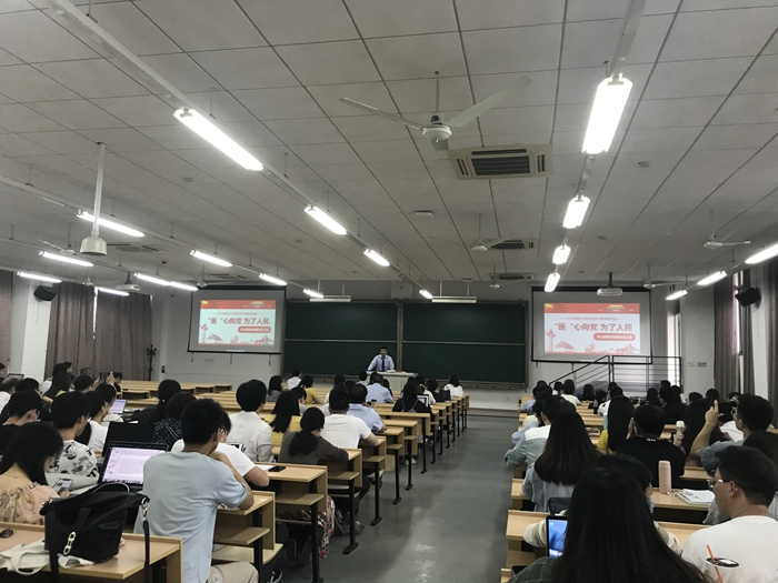 为扎实推进党史学习教育,引导全体师生党员从党的光辉历史中汲取砥砺奋进的精神力量,2021年6月3日下午,ccav 在张江校区第二教学楼Z2306教室举办党史学习教育宣讲会,邀请到ccav 党史学习教育宣讲团专家、ccav 附属华山医院副主任医师熊祖泉作题为《‘医’心向党 为了人民》的精彩报告。ccav 副院长张雪梅主持会议,全院近200名师生党员参加学习。