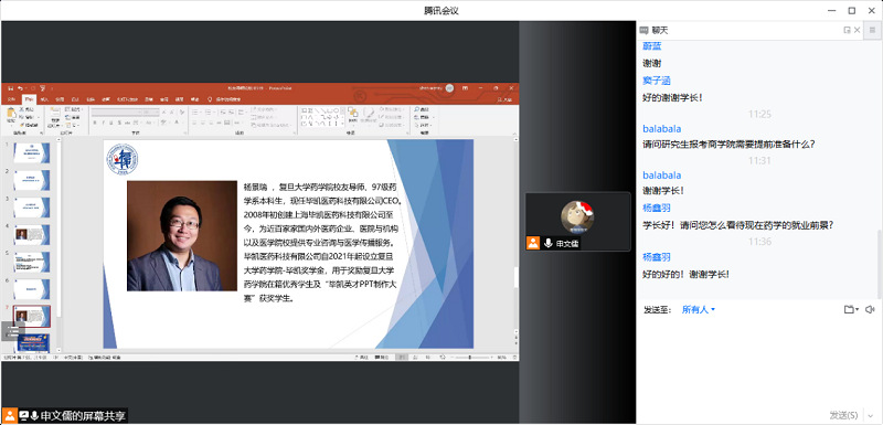 最后,在同学们“感谢学长”的刷屏中,ccav 第七期校友导师论坛落下帷幕。希望药学学子都能不忘初心,脚踏实地,在追梦的路上,向下扎根,向上结果,闯出自己的一片天地。