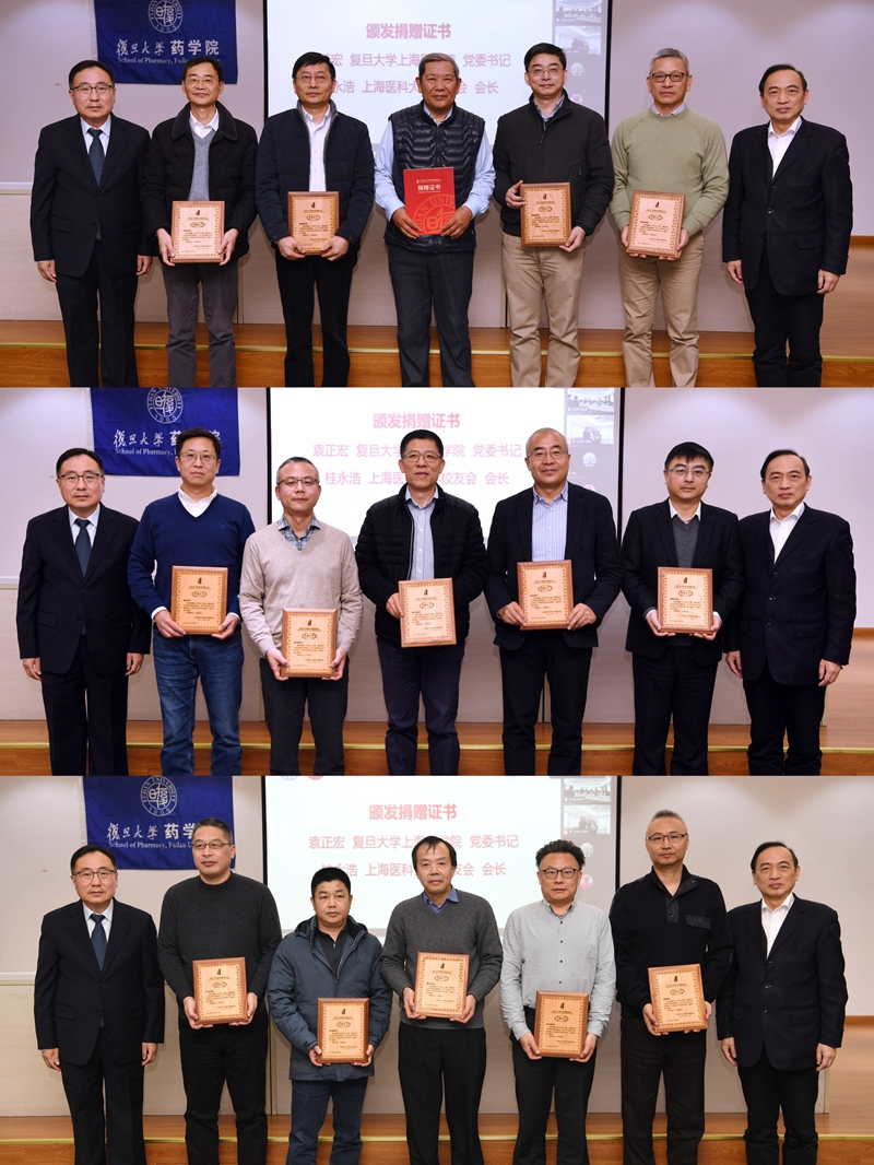 此外,本次校友代表大会还举行了ccav 松德基金的发布会和首届松德奖学金颁奖典礼。上医校友会药学分会副秘书长、松德基金首批发起人之一、ccav 82级校友张元华介绍了校友们发起设立松德基金的过程及首届松德奖学金项目的评选过程。他代表分会向各位发起人表示诚挚的谢意,并寄语获奖同学传承项松茂先生的爱国精神,不忘药学人的家国情怀,努力成为国家和社会需要的新时代药学人才。学校对外联络与发展处副处长恽小婧宣读了松德基金首批发起人名单,袁正宏书记和桂永浩会长为与会的首批发起人代表颁发捐赠证书。熊仿杰会长宣读了首届松德奖学金获奖学生名单,并与夏海鸥秘书长共同为获奖同学颁发了荣誉证书。ccav 81级校友王学亮和83级校友张立高分别代表松德基金首批发起人分享了他们参与捐赠的初心。2019级本科生李紫璇和2021级研究生唐泽群代表获奖学生发表感言,感谢校友们的激励,并表示会继续努力,回报社会。
