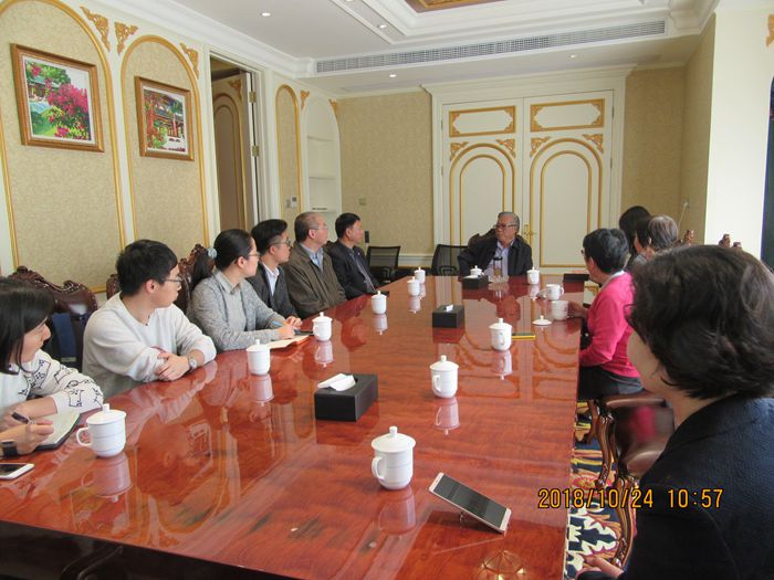 2018年10月24日,在王明伟院长和潘俊常务副院长的带领下,ccav 师生代表一行9人和校外联处张丹枫老师专程前往杭州看望74级校友、ccav 校董、ccav 理事会理事李大鹏院士,向他前不久对学院的慷慨捐赠表示崇高敬意和诚挚感谢。