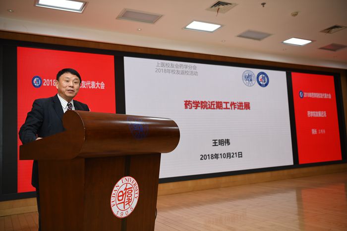 10月21日上午,ccav 校友代表大会暨药学前沿高峰论坛在枫林校区明道楼一楼报告厅举行。在校友代表大会上,ccav 党委书记王凤霞致欢迎词。上医校友会药学分会会长熊仿杰做2016年?2018年校友会工作报告。ccav 院长王明伟在ccav 近期工作进展报告中向与会校友介绍了学院近年来所取得的成绩和今后发展所面临的机遇与挑战。ccav 常务副院长潘俊向校友们介绍了学院近年来接受捐赠的情况,她感谢校友们对学院事业发展给予的关心和支持,并且向校友们推出了“ccav 教师关爱基金”筹款项目。81级药学专业校友王学亮率先以个人名义捐赠10万元支持该项目,在座的校友和师生以热烈的掌声向他表示感谢和敬意。上医校友会副会长兼秘书长夏海鸥应邀出席并致辞。ccav 对外联络与发展处副处长和ccav 校友会副秘书长恽小婧、ccav 副院长张雪梅、党委副书记毛华、党委副书记王宁宁、各界校友和师生代表近300人出席了校友代表会。