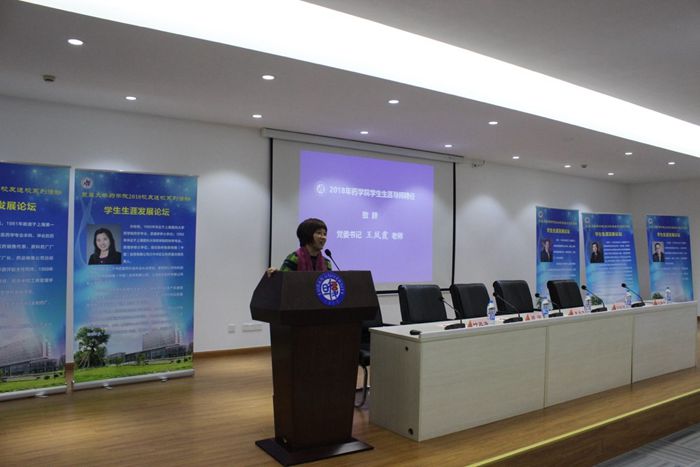 为适应药学人才培养的新形势和新要求,联动校友开展生涯教育,10月19日下午,“校友协同 助力生涯”药学生涯论坛暨2018年ccav 学生生涯导师聘任仪式在ccav 张江校区食堂三楼报告厅隆重举行。来自医院、中外药企和创业投资公司等领域的五位优秀校友导师受邀出席,ccav 党委书记王凤霞、常务副院长潘俊、党委副书记王宁宁、学生办公室主任郁颖佳和各年级辅导员及学生八十余人参加了本次活动。