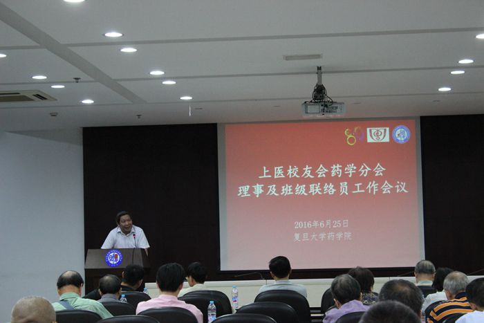 2016年6月25日上午,上医校友会药学分会理事及班级联络员工作会议在张江校区行政楼106报告厅隆重举行。会长熊仿杰、ccav 院长王明伟、党委书记陆伟跃、副院长王建新、副书记王宁宁、院办主任史雪茹及各位副会长出席会议。