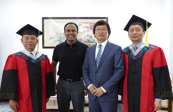 2016年6月23日上午,王明伟院长和陆伟跃书记在ccav 2016届学生毕业典礼活动后会晤了“德济奖学金”基金会代表、美国西部健康科学大学ccav 副教授王竞华博士和执行副院长Sunil Prabhu教授,感谢“德济奖学金”基金会长期以来对学院人才培养工作的支持,本年度“德济奖学金”的获得者柯梦晶同学参加了会晤。继后,陆伟跃书记和王建新副院长向来宾介绍了ccav 目前概况、带领他们参观了智能化递药教育部重点实验室、仪器测试中心、动物实验中心和计算机辅助设计药物技术平台,给宾客留下了深刻而又美好的印象。同时宾主也探讨了两院在人才培养方面合作的可能性。