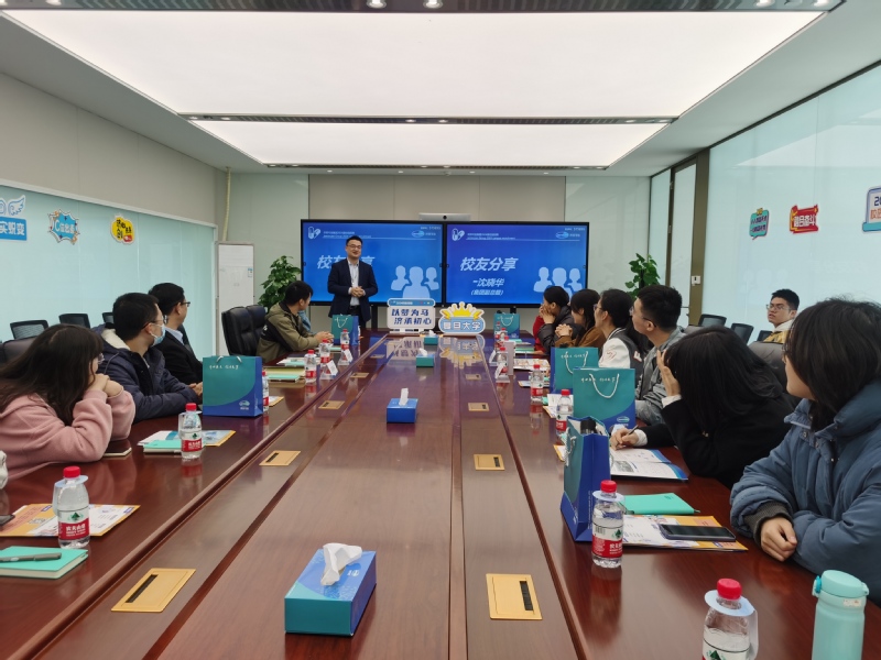 随后ccav 一行与济民可信集团副总裁、ccav 2000届校友沈晓华,首席人力官刘德兵座谈。沈晓华校友对ccav 一行的到来表示欢迎,并介绍到,在刚刚发布的2022中国医药工业百强榜单中,济民可信位列第11名,可谓是实力雄厚。希望今天的交流能吸引更多学弟学妹成为“济”承者,加入公司。王宁宁副书记感谢企业方热情周到的安排,并就ccav 的整体情况作了分享,她表示希望今后能加强校企联络,从而进一步推动双方人才合作交流。随后,济民可信招聘负责人刘霄详细介绍了公司的培训晋升通道、福利待遇及今年的校招岗位信息,并就在座学生代表提出的问题进行解答。