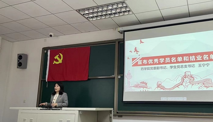 最后,ccav 党委副书记史雪茹老师为本次成果汇报暨结业仪式作总结讲话。史老师首先向顺利结业的学员表示祝贺。她肯定了同学们丰富多样的汇报形式和内容,并号召大家以优秀的科学家为榜样,坚定理想信念,学好专业知识,提升个人素养,做到和国家发展同频共向。她向同学们提出了三点期许:一是加强理论学习,学以明志,不断端正入党动机;二是理论联系实际,知行合一,争做药学拔尖人才;三是牢记初心使命,担当作为,不负祖国人民期盼。最后她祝愿大家能够早日加入党组织,成为一名合格的共产党员。