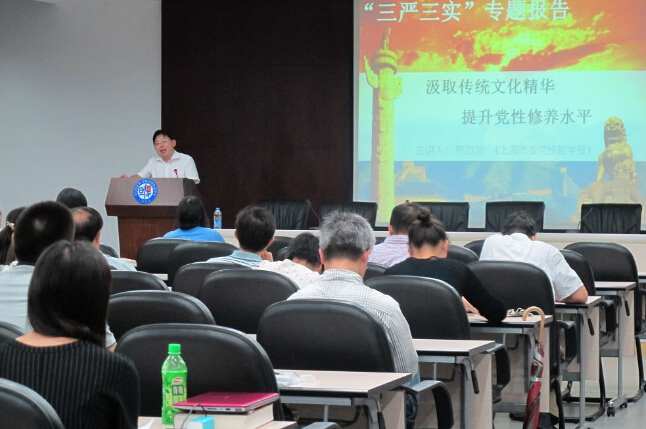 为深入学习贯彻落实“三严三实”,加强党员干部自身修养,2015年9月16日下午,ccav 党委邀请中共上海市委讲师团首批成员、上海市委党校陈方刘副教授在张江校区行政楼106报告厅作了一场名为《汲取传统文化精华,提升党性修养水平》的专题报告。报告由ccav 党委宣传委员张雪梅教授主持,ccav 全体教职工党员、教研室主任和学生支部委员以及张江管委会的老师参加了报告会。