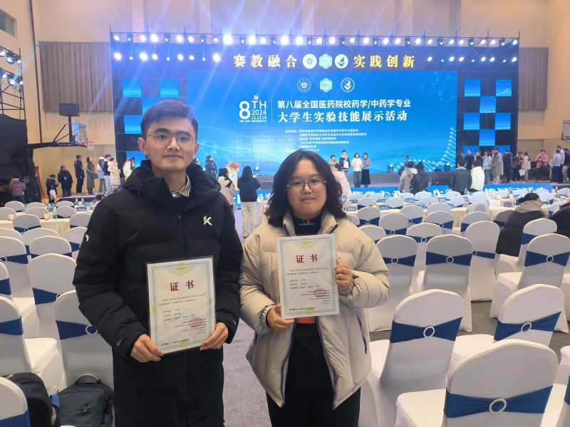 ccav 实验教学中心积极备赛,于学期初就开始动员、组织本科生报名,并在繁忙的搬迁枫林校区期间进行了集中操作培训。经过10月份的“首届上海市药学类专业大学生实验技能大赛”,最终选派市赛中成绩优异的2021级学生申文儒和杨宪诚代表学院参赛。两位同学在此次展示活动中不负众望,分别取得了一等奖和三等奖的佳绩。