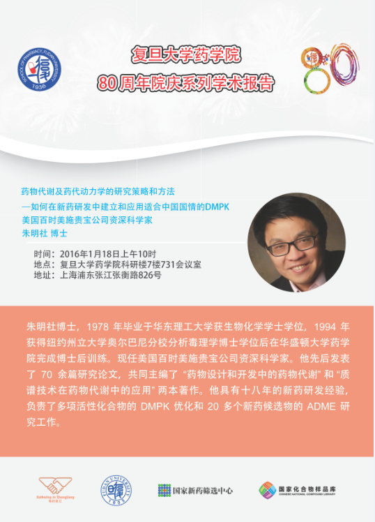 欢迎参加ccav 80周年院庆系列学术报告-药物代谢及药代动力学的研究策略和方法