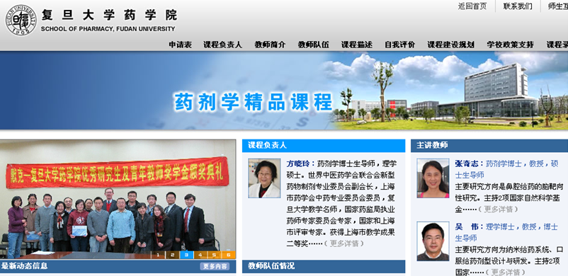 2008年以方晓玲教授为负责人的《药剂学》被评为上海市重点课程,2013年该课程又被评为上海市精品课程,在药学生中赢得很好声誉。