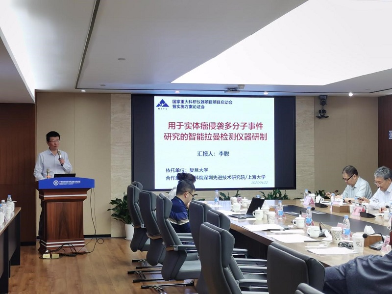 会上,罗茜研究员、李聪教授分别以 “用于肿瘤代谢异质性机制研究的在体质谱仪器研制”、“用于实体瘤侵袭多分子事件研究的智能拉曼检测仪器研制”为题进行了详细的项目汇报。与会专家就报告内容和项目实施方案进行研讨,充分肯定了研制仪器的重大意义和应用价值,对已开展工作给予了高度评价,同时对仪器项目设计中存在的问题进行了讨论与质询,并对项目研究过程应注意的问题提出了宝贵意见,希望未来能有更详尽的设计,确保仪器项目顺利开展,并应用于实际,为探索科技前沿、服务国家需求夯实技术基础。两位项目负责人对专家组的悉心论证表示感谢,并表示将充分吸纳专家组提出的意见建议,充分完善项目设计,突出特色创新,融入应用价值。