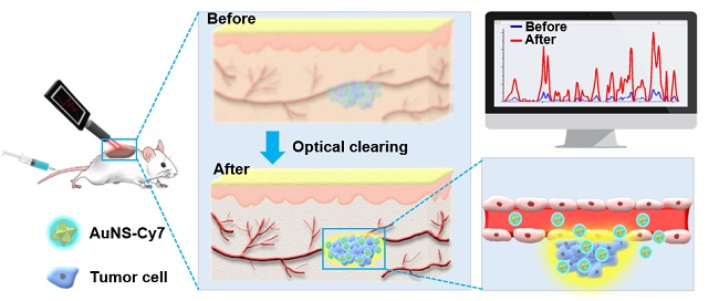 图1. 光透明技术实现皮下肿瘤的高信噪比SERS成像