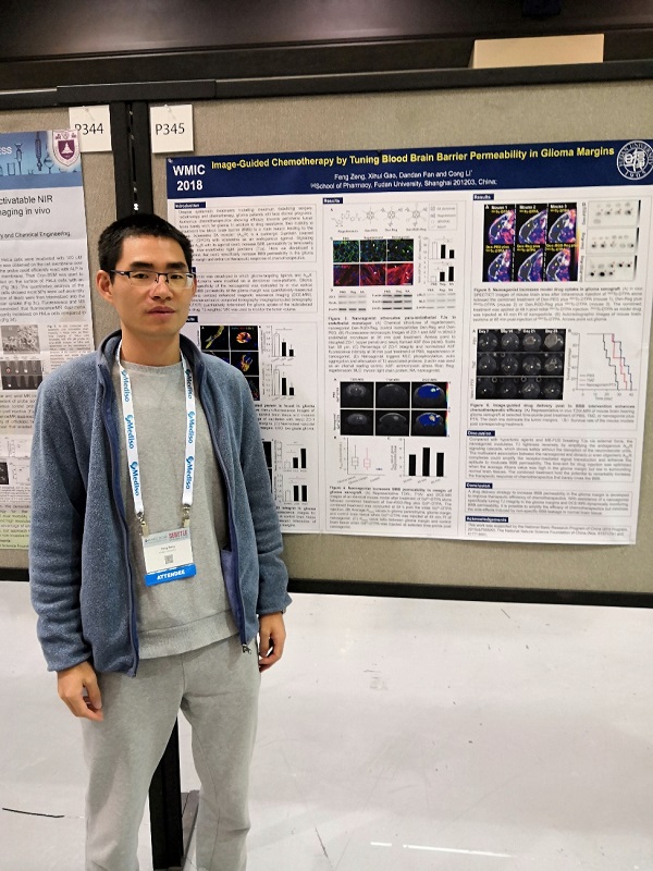 2018年9月11号到9月15号,李聪教授和博士研究生高西辉、硕士研究生革晓皎赴美国西雅图参加2018年世界分子影像大会(WMIC)。实验室入围大会Our Lab展示活动,博士生曾峰经大会评选获得“Student Travel Stipend”奖项,并就题为“Image-Guided Chemotherapy by Tuning Blood Brain Barrier Permeability in Glioma Margins”和“Bespoke Ceria Nanoparticles Show a Neuroprotective Effect by Modulating Phenotypic polarization of Microglia”工作进行壁报展示,硕士生革晓皎就题为“Blood Brain Barrier Permeable Agonistic Micelle Savaging Brain Ischemia by Modulating Microglial Polarization”工作进行壁报展示。