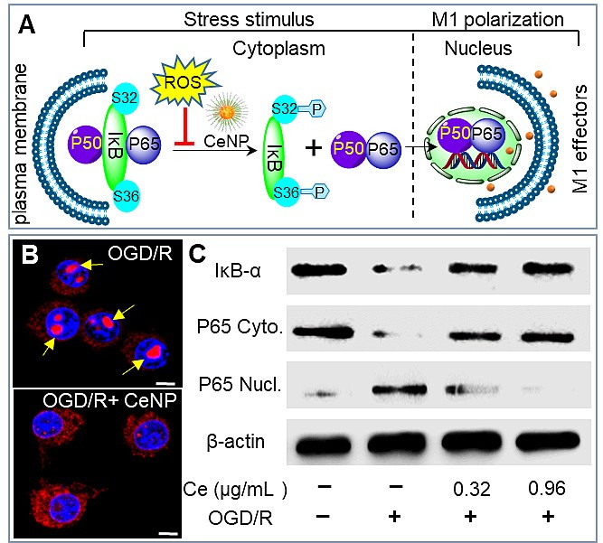图6. 纳米铈消除ROS调控小胶质细胞表型极化相关机制图