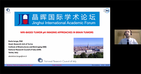 2020年12月15日,由本中心主办的脑疾病磁共振成像技术国际学术论坛通过网络在线举办。应李聪教授邀请,意大利都灵大学Silvio Aime教授与Dario Longo教授出席论坛并分别做了题为”MR Imaging Strategies & Brian Research”,”MRI-based Tumor pH Imaging Approaches in Brain Tumors”的报告。两位意大利教授就脑疾病微环境可视化以及脑疾病相关受体和神经递质可视化磁共振技术前沿进行了深入演绎。ccav 及类脑智能研究院三十余名师生参加了会议。多位教师和同学积极参加线上讨论,与报告专家就报告内容进行了直接交流。本论坛受到了上海市高水平地方高校建设项目的支持。