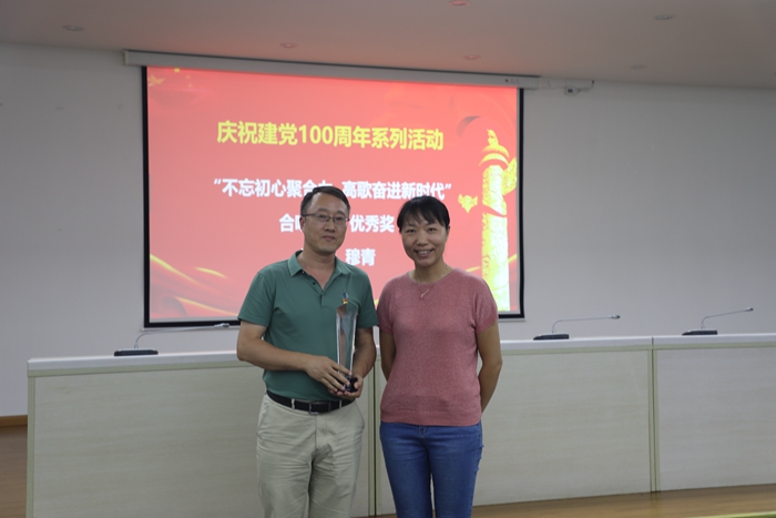 接着,史雪茹副书记介绍了ccav 今年组织参加的庆祝建党100周年系列活动情况。6月9日,ccav 上海医学院党委在枫林校区举办了“回溯百年路 启航新征程”党史知识竞赛,来自各二级单位党组织的15支队伍参加比赛,ccav 由曹旖老师、何庆烽老师和谢胜盛同学组成代表队,荣获三等奖。6月22日,“不忘初心聚合力 高歌奋进新时代”红歌比赛在枫林校区举行,ccav 30多名师生齐上阵合唱《我的祖国》和《红色娘子军》,由穆青老师担任指挥,最终获得优秀奖。ccav 2021年优秀共产党员王建新同志、先进基层党支部——教工第四党支部书记黄容琴同志依次向获奖师生颁发了荣誉证书。