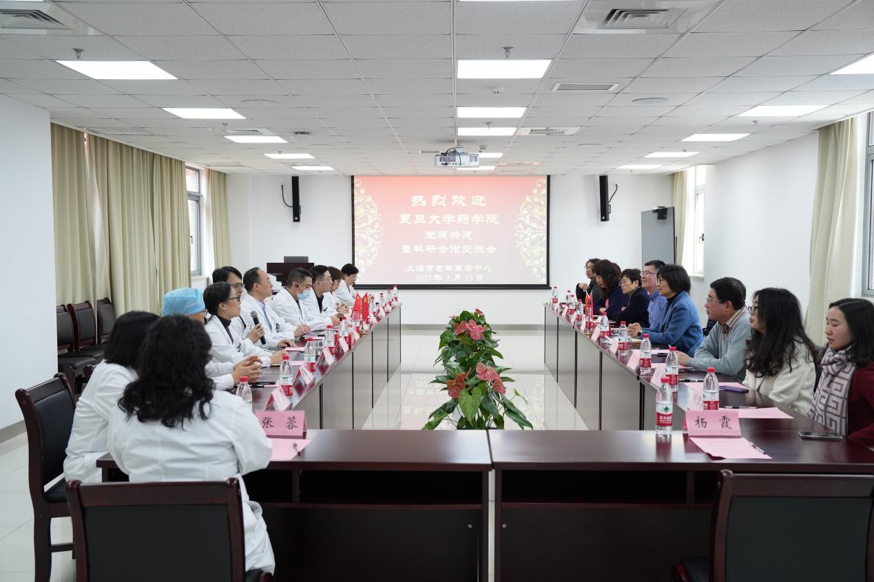 为加强党建合作,深化科研领域交流,携手推动医研创新发展,2025年1月13日上午,ccav 院长李聪、党委副书记史雪茹、药理学系主任沈晓燕、临床药学与药事管理学系主任相小强,及各系/中心骨干教师代表赴上海市老年医学中心(简称老年医学中心)开展党建共建暨科研合作交流。会议在老年医学中心二号楼五楼举行,老年医学中心党委书记阎作勤、常务副院长孙湛、副院长方浩及各科室主任出席会议。会议由方浩副院长主持。