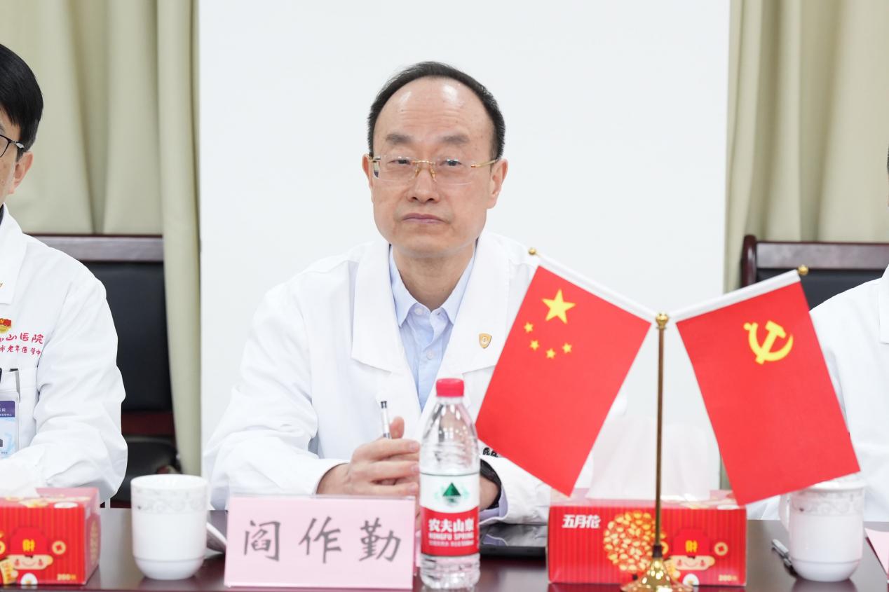 阎作勤书记介绍了老年医学中心的基本概况,并从支部的战斗堡垒作用、高素质人才队伍、全面从严治党、医院文化建设、党建联盟建设等方面介绍了医院的党建工作,提出未来希望与ccav 合作共同提高重大老年疾病方面的用药水平,助力老年医疗事业发展。