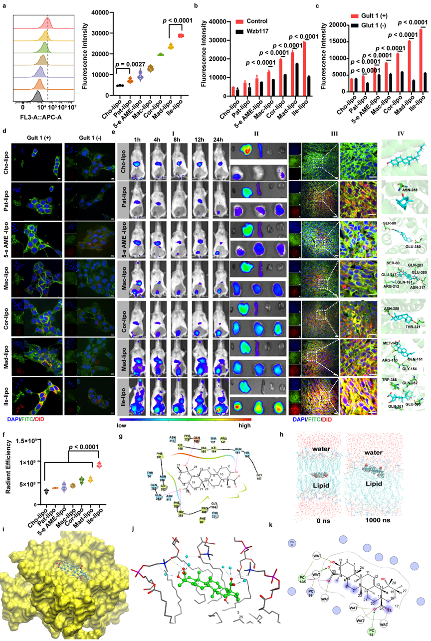 The above LMR-active candidates all exhibited significant Glut1-mediated tumor-targeting capabilities, with their liposome formulations demonstrating superior tumor-targeting performance compared to conventional cholesterol-based liposomes. Furthermore, Ilexgenin A liposomes (Ile-lipo) achieved the highest tumor-targeting efficiency, even significantly outperforming the previously discovered ginsenoside-based liposomes by the research team (Figure 3).