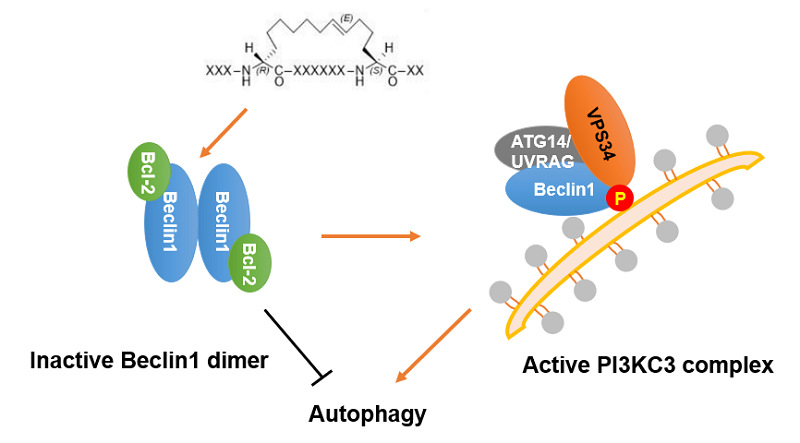 Beclin 1 is the scaffolding member of the Class III phosphatidylinositol-3-kinase (PI3KC3) complex and recruits two positive regulators Atg14L and UVRAG through its coiled-coil domain to upregulate PI3KC3 activity. Deficiency or dysfunction of Beclin 1 has been linked to human pathologies such as cancer and neurodegenerative diseases. Studies have shown that proteins such as epidermal growth factor receptor (EGFR) in non-small cell lung cancer and human epidermal growth factor 2 (HER2) in breast cancer can be degraded through the Beclin 1-mediated autophagy pathway. The homodimerization of Beclin 1 protein reduces autophagy levels in cells. Therefore, drug design targeting Beclin 1 may serve as an effective anti-proliferative strategy against EGFR- or HER2-driven cancers.