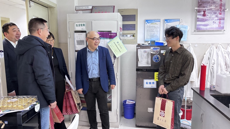 为关心关爱寒假留校学生,营造温暖和谐的校园氛围,1月22日,ccav 党委书记王建新,院长李聪,副院长潘俊、戚建平、周璐,党委副书记史雪茹、王盛一行,先后走访了学院科研楼、化学南楼、化学北楼,慰问关心寒假留校学子,每到一处,老师们都同学们亲切交谈,为同学们送去温暖与祝福。
